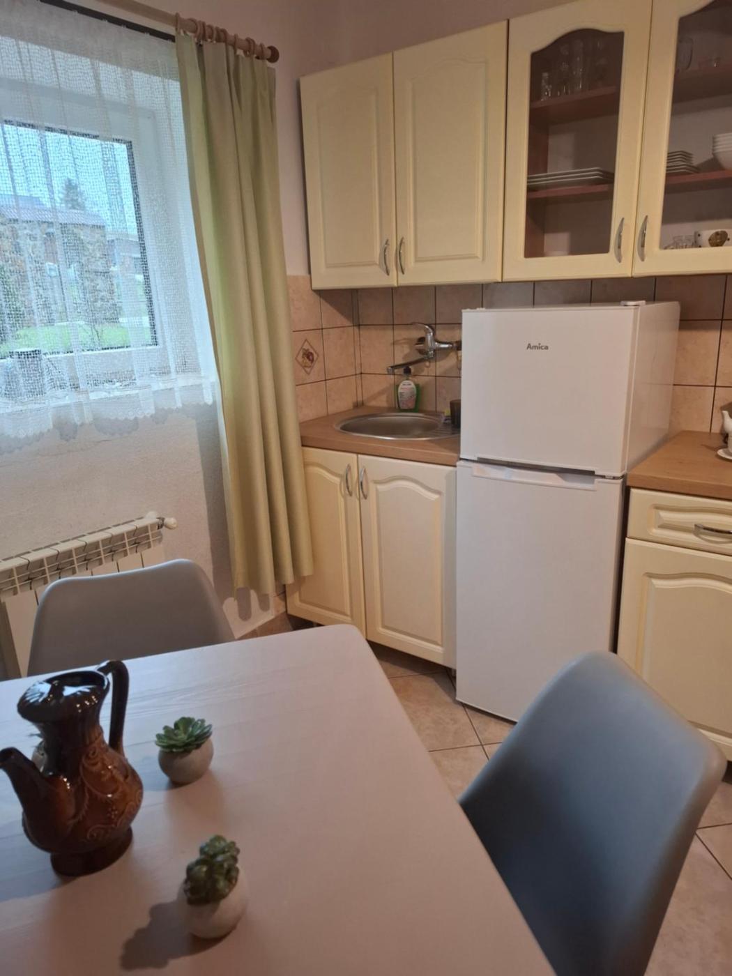 Pokój rodzinny z prywatną łazienką. This family rooms standout feature is the fireplace. The family room features a dining area, a wardrobe, as well as a private bathroom boasting a walk-in shower. Guests will find a stovetop, a refrigerator, kitchenware and an oven in the well-fitted kitchen. The family room also features a barbecue. The spacious family room offers a washing machine, a private entrance, a tea and coffee maker, a flat-screen TV, as well as garden views. The unit has 2 beds. Rodzinny - 3 osobowy. Powierzchnia pokoju ok.: 60 mkw.