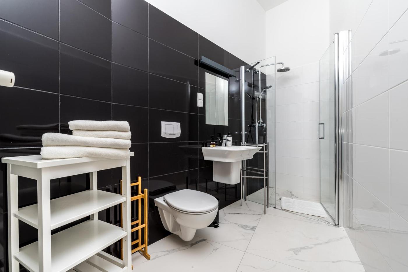 Apartament typu studio. The apartment has 1 bedroom and 1 bathroom with a shower and free toiletries. The well-equipped kitchenette features a stovetop, a refrigerator, kitchenware and a microwave. The apartment features soundproof walls, a tea and coffee maker, a seating area, a flat-screen TV, as well as city views. The unit has 2 beds. Apartament - 2 osobowy. Powierzchnia pokoju ok.: 29 mkw.